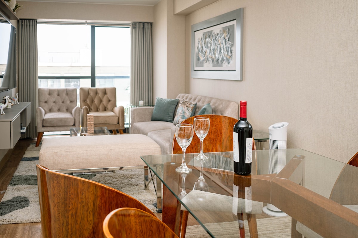 Căn hộ đầy đủ tiện nghi hiện đại, hoàn hảo cho thời gian lưu trú dài. TV thông minh 65"với Netflix & Disney+, Wi-Fi tốc độ cao, nhà bếp được trang bị đầy đủ tiện nghi với máy pha cà phê espresso, đồ giặt ủi trong căn hộ, giường queen, nước nóng và ban công nhìn ra đường phố. Tòa nhà có hồ bơi, phòng tập thể dục, không gian làm việc chung, tự nhận phòng 24/7, đỗ xe và an ninh. Đã bao gồm cà phê và bánh quy miễn phí!