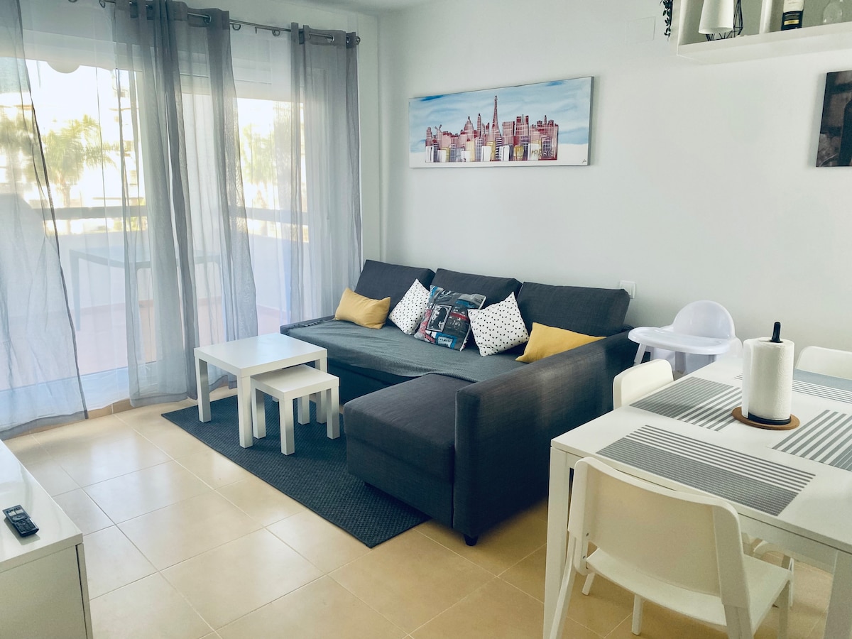 Căn hộ 2 phòng ngủ đáng yêu tại một khu nghỉ dưỡng golf Las Terrazas de La Torre xinh đẹp. Được bao quanh bởi nhiều hồ bơi và cây xanh đáng yêu. Sân golf phong cách tráng miệng Jack Nicklaus Saurine. Siêu thị và quán bar trong khuôn viên. Cách bãi biển gần nhất một quãng lái xe ngắn, khoảng 15 phút. Các thị trấn Roldan, Balsicas hoặc Los Alcazares gần đó có rất nhiều nhà hàng và cơ sở vật chất. Sân bay Murcia cách đó 25 phút lái xe và sân bay Alicante khoảng 1 giờ. Dài hạn cho phép tối đa 6 tháng (không bao gồm tháng 7 và tháng 8)