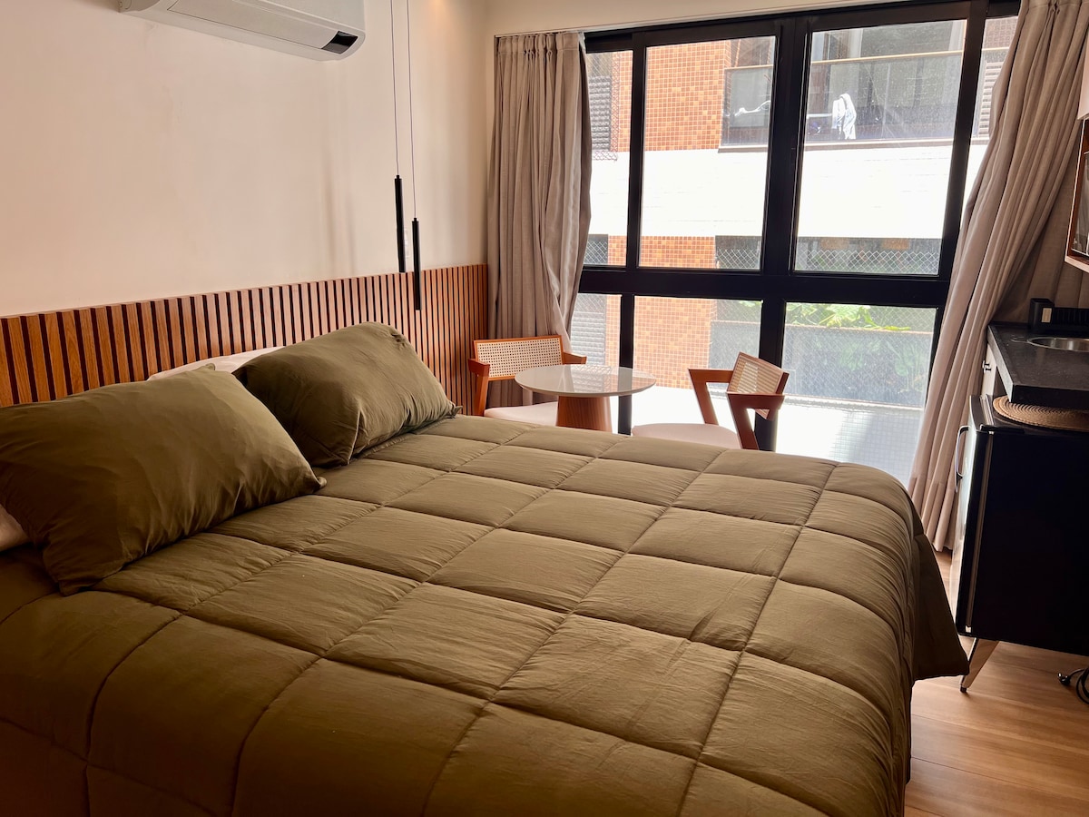Nghỉ ngơi thoải mái trong căn hộ của bạn tại Get One, ngay trung tâm Vườn Châu Đại Dương, chỉ cách bờ sông vài phút. Môi trường hiện đại, điều hòa không khí và chức năng, lý tưởng cho việc giải trí hoặc đi công tác. Bên cạnh các quán cà phê, chợ và nhà hàng của Av. Argemiro de Figueiredo. Bố cục: [studio/1 phòng ngủ] với giường queen với một đế phụ, điều hòa không khí, phòng tắm, nhà bếp được trang bị, wi-fi và TV. Khu vực chung: Bể bơi, làm việc chung, gara xoay, tiệc nướng, giặt ủi, nhà hàng.