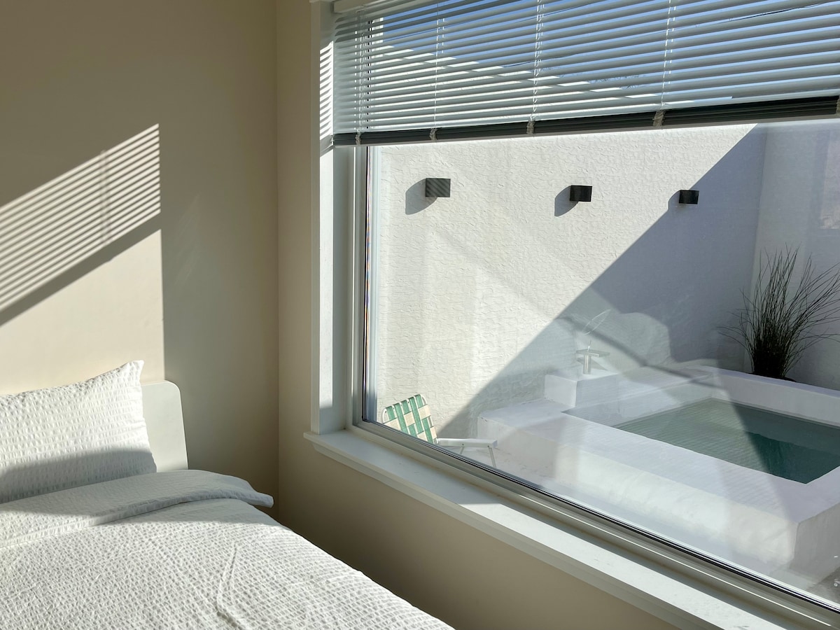 Hello. Perched on a cliff in central Seogwipo, this suite offers ocean views where islands and sea meet on one horizon. The 66㎡ private space keeps you apart from other travelers. Studio-style, yet spacious, with separate bedroom, living, and kitchen zones for an easy flow. On the terrace, soak in the spa and enjoy a private barbecue above the water. Free breakfast served with wide sea views. May to October, swim in the infinity pool facing Beomseom. The rooftop garden captures Jeju sunsets.
