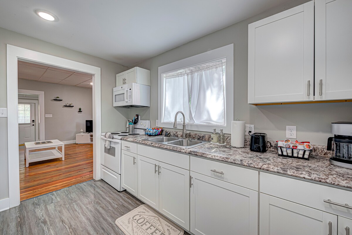 Ấm cúng với cả gia đình trong ngôi nhà hai phòng ngủ, một phòng tắm đáng yêu này. Chỗ ở này bao gồm một giường cỡ king và queen, với một TV trong mỗi phòng ngủ. Cắn một miếng để ăn tại một trong nhiều nhà hàng địa phương hoặc tự nấu bữa ăn trong nhà bếp đầy đủ đồ. Đã bao gồm máy rửa bát, lò vi sóng, máy sấy không khí, Keurig, bát đựng thú cưng và bát đĩa/dụng cụ cho trẻ nhỏ. Hãy nhớ tận dụng sân sau có hàng rào, hố lửa và lò nướng ga. Bạn sẽ tìm thấy một máy chạy bộ, máy tập toàn thân và tạ trong gara.