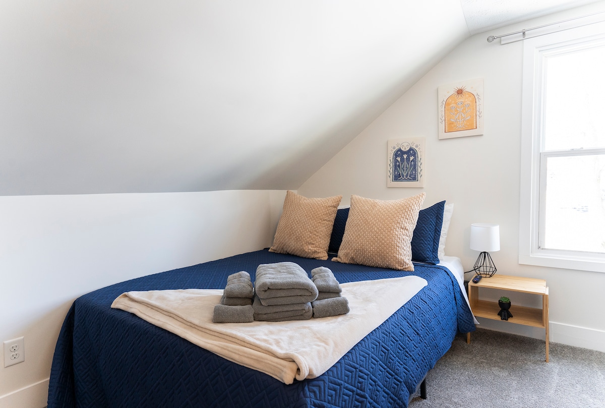 Cozy up with the whole family in this lovely two-bedroom, one-bathroom home. This stay includes a king and queen bed, with a TV in each bedroom. Grab a bite to eat at one of the many local restaurants or whip up your own meal in the fully-stocked kitchen. A dishwasher, microwave, air fryer, Keurig, pet bowls, and toddler dishes/utensils are included. Be sure to take advantage of the fenced-in backyard, fire pit, and gas grill. You will find a treadmill, elliptical, and weights in the garage.