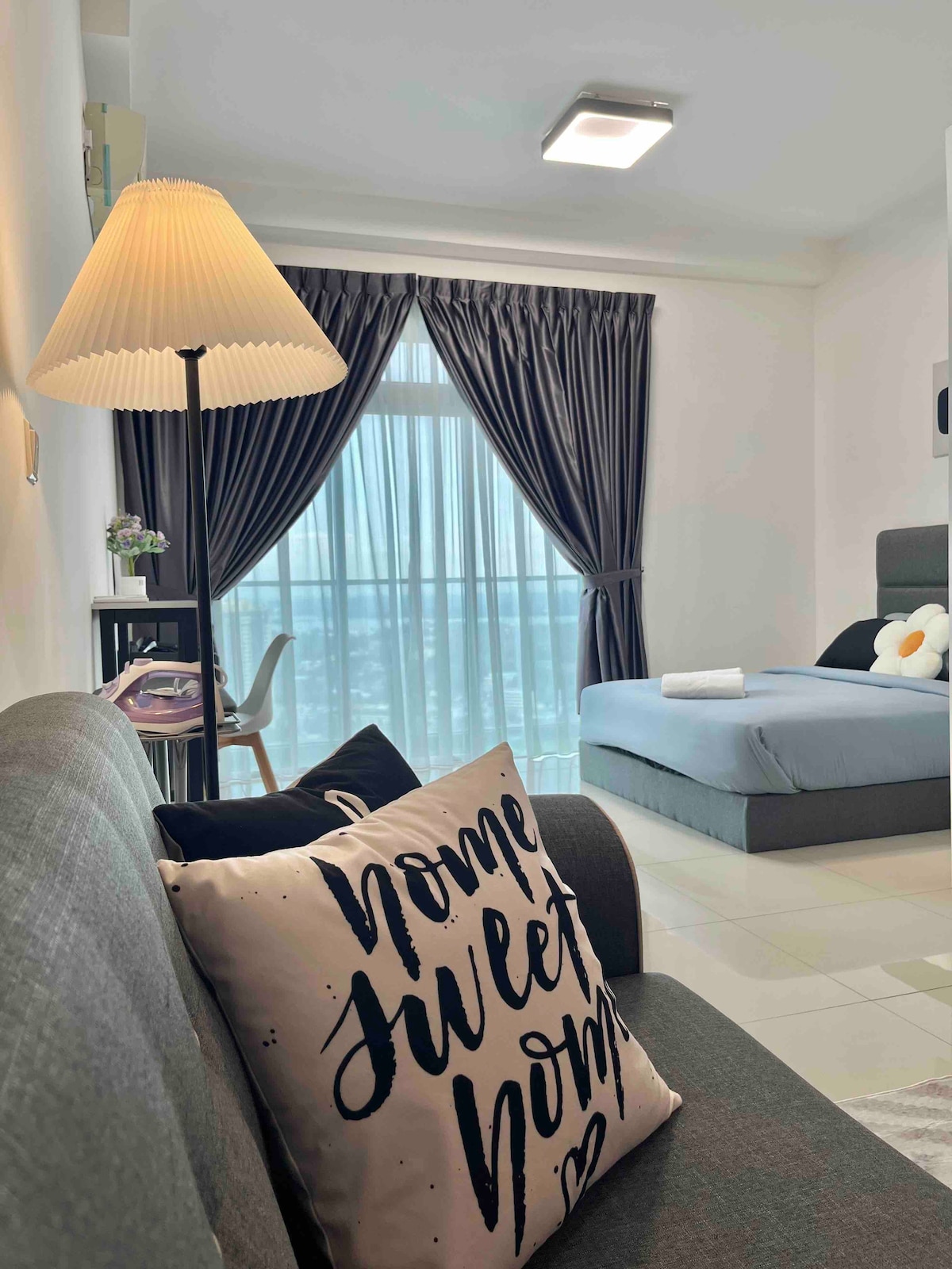(1+1 phòng ngủ & 1 phòng tắm) Căn hộ chung cư hiện đại và ấm cúng hiện đại ngay trung tâm thành phố JB. Phù hợp với gia đình 4 người, bạn bè và nhóm kinh doanh. **5 phút đến CIQ, Quảng trường Thành phố, KSL, Pelangi và Larkin **8 phút đến Mid Valley Southkey, Larkin Sentral và Sentosa ** Cách trung tâm thương mại Paradigm, Sutera, Skudai và Mount Austin 15 phút lái xe TV thông minh ✔ 4K Wi-Fi tốc độ✔ cao, bàn làm việc có phích cắm mở rộng ✔ Máy giặt Điều ✔ hòa nhiệt độ trong mỗi phòng. Trò chơi bảng điều khiển✔ Atari, Mahjong và Board. Chỗ đỗ xe✔ MIỄN PHÍ cho 1 xe