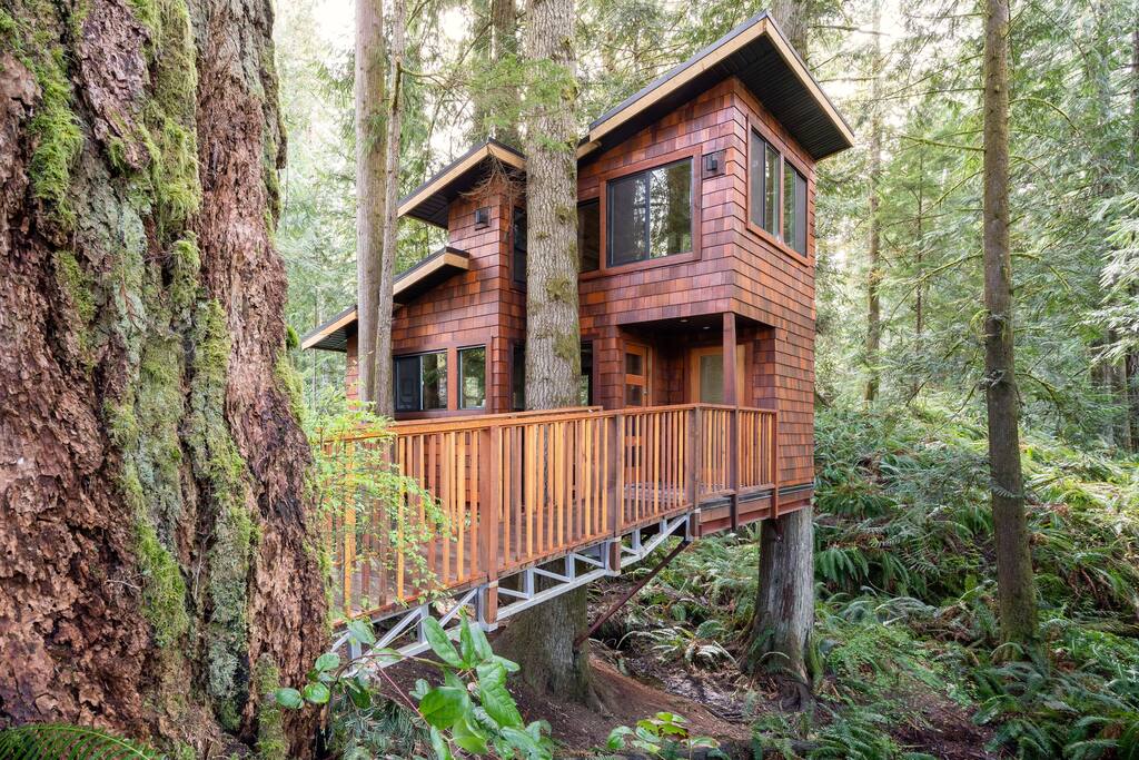 Our 3 acre property is tucked in the rainforest, a short walk from the ocean and surrounded by magical beaches & parks. Enjoy the surf, beautiful hikes, cozy beach fires, and true West Coast rainforest. The home features striking sitting-nook windows that give the illusion of floating among the trees, along with a gourmet chef’s kitchen, 3 plush king beds, skylight loft, spa-inspired bathroom, luxury mudroom, outdoor shower and a cedar sauna.