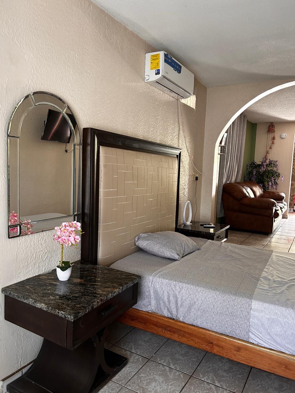 Departamento tipo estudio, cómodo y tranquilo, ideal para familias, parejas o grupos que viajan juntos. Cuenta con dos áreas para dormir dentro de un mismo espacio abierto, sin puertas divisorias, lo que brinda amplitud y convivencia .Dispone de agua potable con filtro de excelente calidad, patio privado con árboles para relajarse, cochera techada y es pet friendly. Ubicación estratégica cerca del consulado,central camionera y aeropuerto.Espacio limpio,cuidado y con atención durante la estancia.