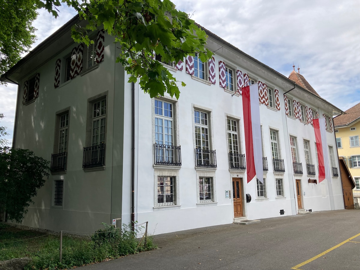 Căn hộ 4,5 phòng nằm ở trung tâm nằm ở tầng 1 nhìn ra toàn cảnh của khu phố cổ Solothurn. - Phòng khách lịch sử với sàn gỗ nguyên bản, trần nhà bằng vữa và tranh tường phong phú ở Göttersaal - Phòng bếp - phòng khách mới hiện đại, được trang bị phong phú - Phòng ăn riêng - TV và truy cập internet miễn phí - Phòng ngủ nhìn ra công viên - Bãi đỗ xe miễn phí có trạm sạc điện Căn hộ nằm ở Aare ở ngoại ô. Ga tàu trung tâm cách đó 5 phút đi bộ.