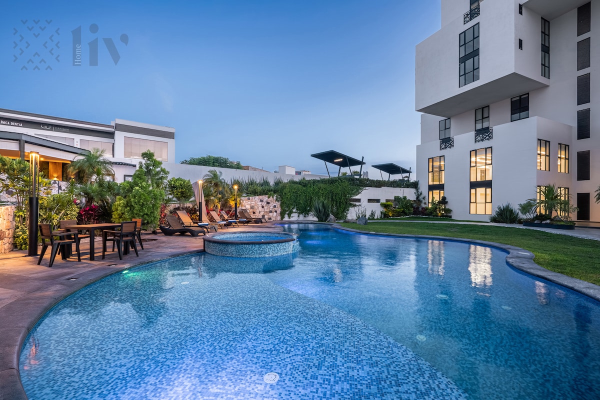 Chào mừng bạn đến với nơi nghỉ dưỡng sang trọng ngay trung tâm Querétaro hiện đại! Căn hộ quyến rũ này mang đến sự thoải mái và phong cách ở vị trí đắc địa. Nhà bếp đầy đủ tiện nghi và phòng khách ấm cúng với HDTV. Wi-Fi tốc độ cao và dịch vụ khách hàng chuyên dụng luôn có sẵn. Để thuận tiện cho bạn, chúng tôi có một căn hộ nhỏ trong căn hộ của mình, làm cho nó trở thành nơi ở lý tưởng. Đặt ngay bây giờ và biến chuyến đi của bạn thành một trải nghiệm khó quên!