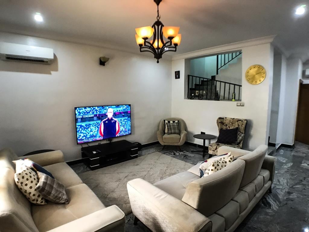 Welcome to Meka Homes—an elegant, smart apartment designed for comfort, privacy, and ease. Perfect for short and long stays, this home is located in a secure, gated estate with a private compound. It features king-sized beds in all ensuite rooms, smart TVs with streaming services, unlimited high-speed internet, backup power, and a well-equipped kitchen. Enjoy a peaceful environment with easy access to nearby grocery stores, pharmacies, and eateries.