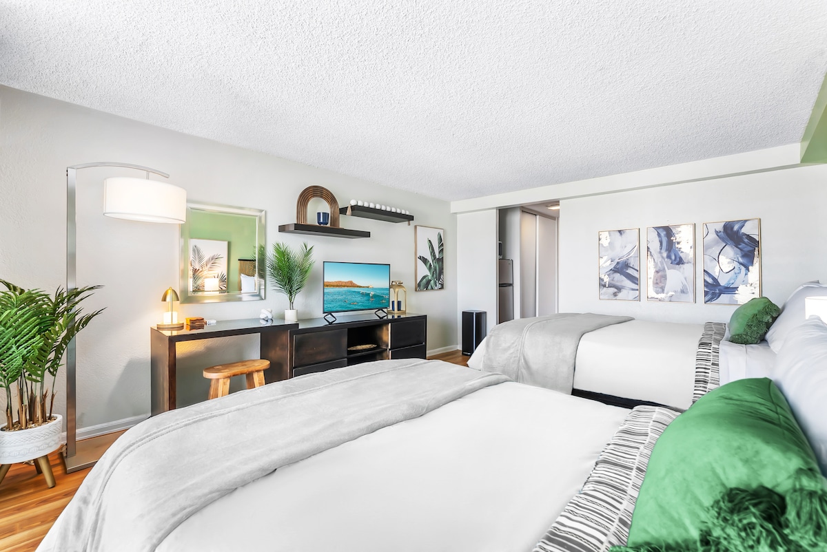 🌺 Welcome to the top floor studio in Kuhio Village Tower 2—just steps from the best of Waikiki! Enjoy your own private condo with a King-size bed, private lanai, full bath, and free beach gear. Perfect for couples, solo travelers, or those seeking a convenient island home base. 🌴 Surrounded by amazing restaurants, local food trucks, and just a short stroll to Waikiki Beach and the International Marketplace—you can’t beat this location for the price!