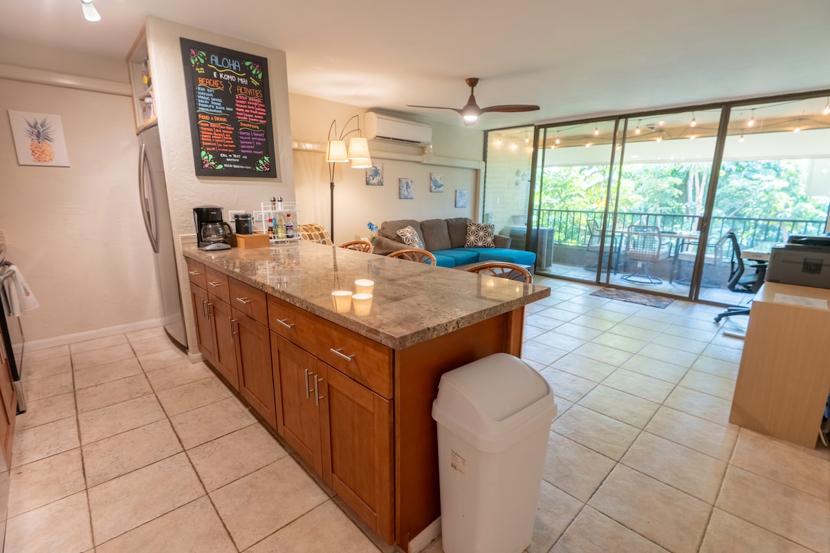Welcome to your tropical getaway in Kailua-Kona! This spacious 1-bedroom, 1-bath condo is in a charming complex just off Aliʻi Drive, with a bright, colorful interior. Sleeps up to 4 with a king bed and queen sofa bed. Enjoy a fully equipped kitchen, AC, and a peaceful pool with sun deck. Walk across the street for ocean sunsets, beaches, and markets—an ideal home base on the Big Island.