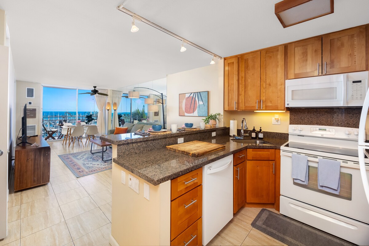 Tỉnh dậy với tầm nhìn ra biển và ngắm những người lướt sóng từ lanai riêng của bạn, sau đó đi dạo đến Bãi biển Waikiki chỉ trong ba phút. Căn hộ 1 phòng ngủ sáng sủa, được cải tạo của chúng tôi tại Waikiki Banyan có thể chứa tối đa 4 người với hai giường đôi và một giường sofa cỡ queen. Nhà bếp đầy đủ đồ dùng, có sẵn dụng cụ đi biển và chỗ đỗ xe MIỄN PHÍ (một lợi ích hiếm có ở Waikiki). Đi bộ đến các nhà hàng và cửa hàng, sau đó thư giãn với khung cảnh hoàng hôn từ hiên nhà của bạn.
