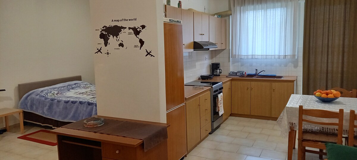 Nhà khách của chúng tôi bao gồm 4 studio giống hệt nhau với rất nhiều sự riêng tư. Mỗi studio có một giường lò xo đôi thoải mái, 2 tủ quần áo không cửa ngăn, phòng tắm khép kín có vòi sen và bồn cầu, bếp nhỏ và điều hòa không khí. Bên ngoài mỗi studio có hiên rộng có mái che và sân thượng thoáng đãng với 2 giường tắm nắng. Bữa sáng tươi ngon và lành mạnh như được phục vụ trong vườn chung, nơi bạn cũng có thể tìm thấy vòi sen và võng ngoài trời. Bãi biển cát và taverna chỉ cách đó vài phút đi bộ.