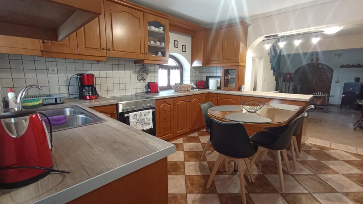 Ngôi nhà rộng 135m2 và bao gồm: 4 phòng ngủ, phòng khách, bếp, không gian mở với lò sưởi, 2 phòng tắm và 2 ban công. Nhà được trang bị tất cả các dụng cụ cần thiết để chuẩn bị một bữa ăn đầy đủ (bếp - tủ lạnh - ấm đun nước - máy nướng bánh mì). Có thể chứa tối đa 8 người. Trong phòng đôi có phòng tắm và tủ lạnh, có khả năng tách biệt với phần còn lại của ngôi nhà. Ở tầng trệt có quán rượu truyền thống của chúng tôi "Paralia" và đang chờ bạn đến thử các món ăn truyền thống của vùng đất Laconia.