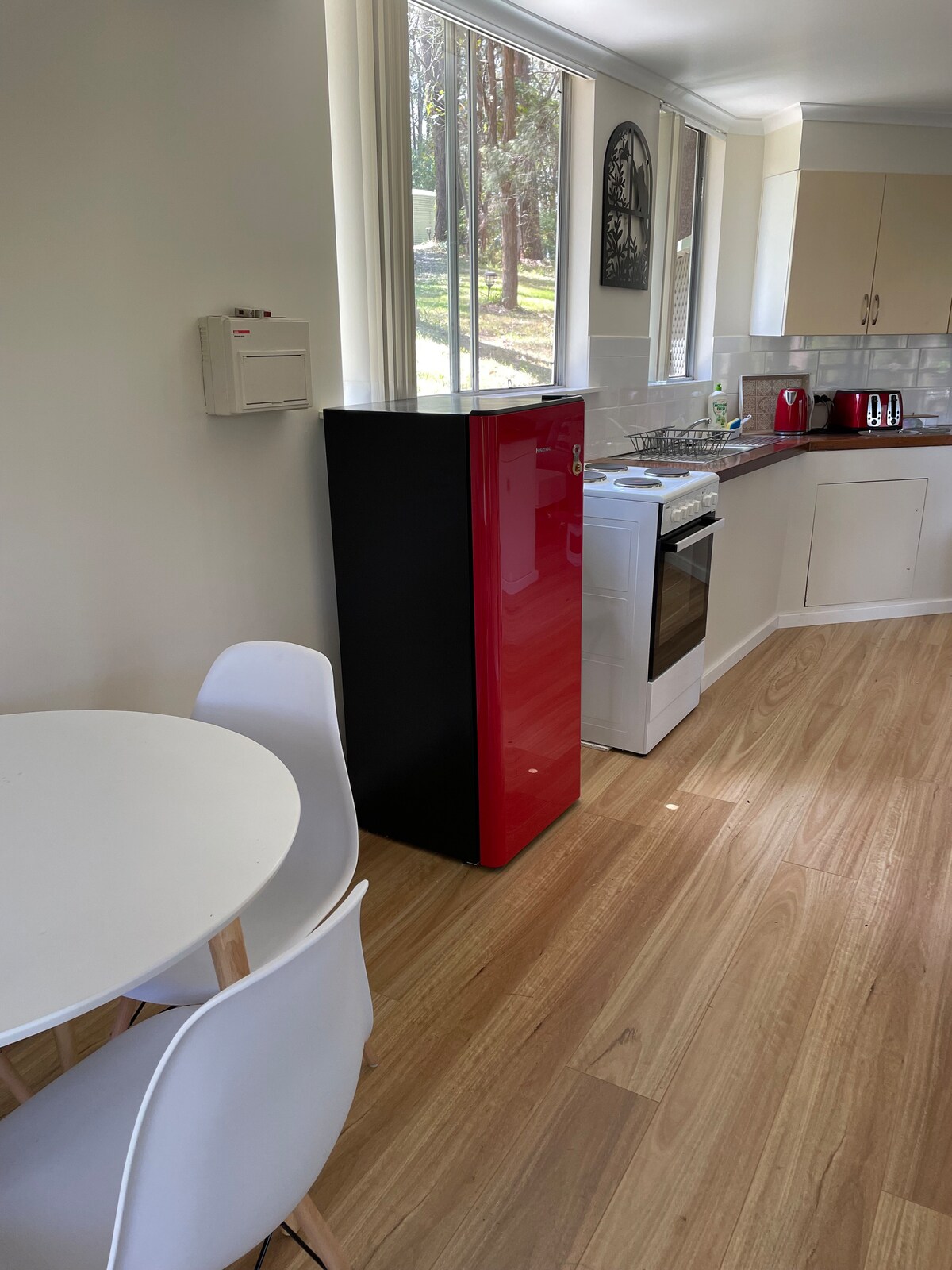 Một cặp đôi thực sự sang trọng nghỉ ngơi! Nơi nghỉ ngơi theo phong cách biệt thự riêng này có lối vào riêng và không gian boong để thư giãn và có vòi sen ngoài trời nóng. Được trang bị đồ nội thất và đồ đạc chất lượng và được trang bị mọi thứ bạn cần! Vị trí thực sự không tốt hơn thế này. Bạn đang ở bên kia đường từ Bãi biển Blue Lagoon xinh đẹp! Với Bateau Bay Beach Cafe cách 150 m. Bếp có tủ lạnh, tủ đông, máy rửa chén, lò vi sóng và chảo điện. Lưu ý không sử dụng bếp nấu hoặc lò nướng.