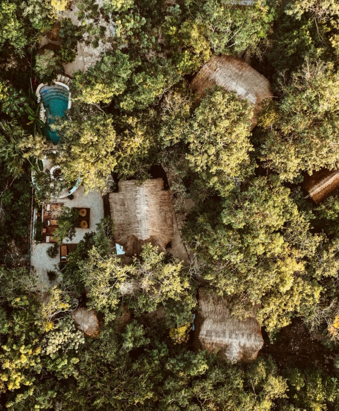 Eco-aldea privada rodeada de selva en la Ruta de los Cenotes. La propiedad se renta completa y ofrece siete alojamientos, alberca, fogata, yoga shala, cocina compartida y desayuno incluido. Un refugio natural para desconectarse, explorar y reconectar.