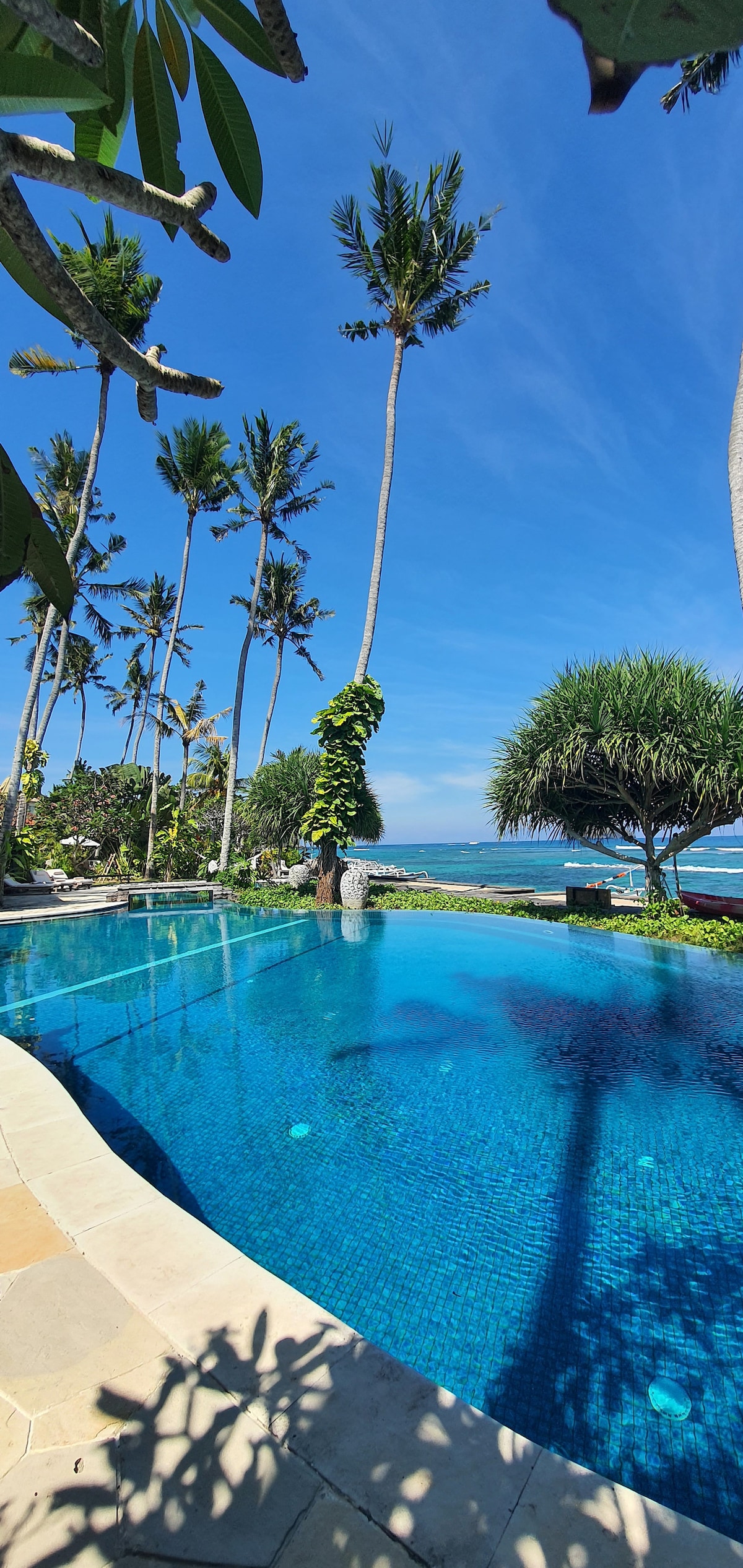 Ngôi nhà bãi biển của riêng bạn với hồ bơi. Hoàn hảo cho một kỳ nghỉ gia đình, thời gian chất lượng với một nhóm hoặc một kỳ nghỉ lãng mạn. 3 phòng ngủ có điều hòa, 3 phòng tắm. Bơi trong hồ bơi dài 10 mét, nhảy xuống biển. Một số hoạt động lặn và lặn với ống thở tốt nhất trên bờ biển ngay ngoài cổng. Nghỉ ngơi và phục hồi sức khỏe trong nhiều không gian riêng tư thú vị, nhà gỗ có đệm và hiên mát và hồ bơi với giường tắm nắng và võng. Chủ nhà/đầu bếp nổi tiếng với món ăn Bali ngon nhất ở Bali, được phục vụ cho bạn bên bờ biển.