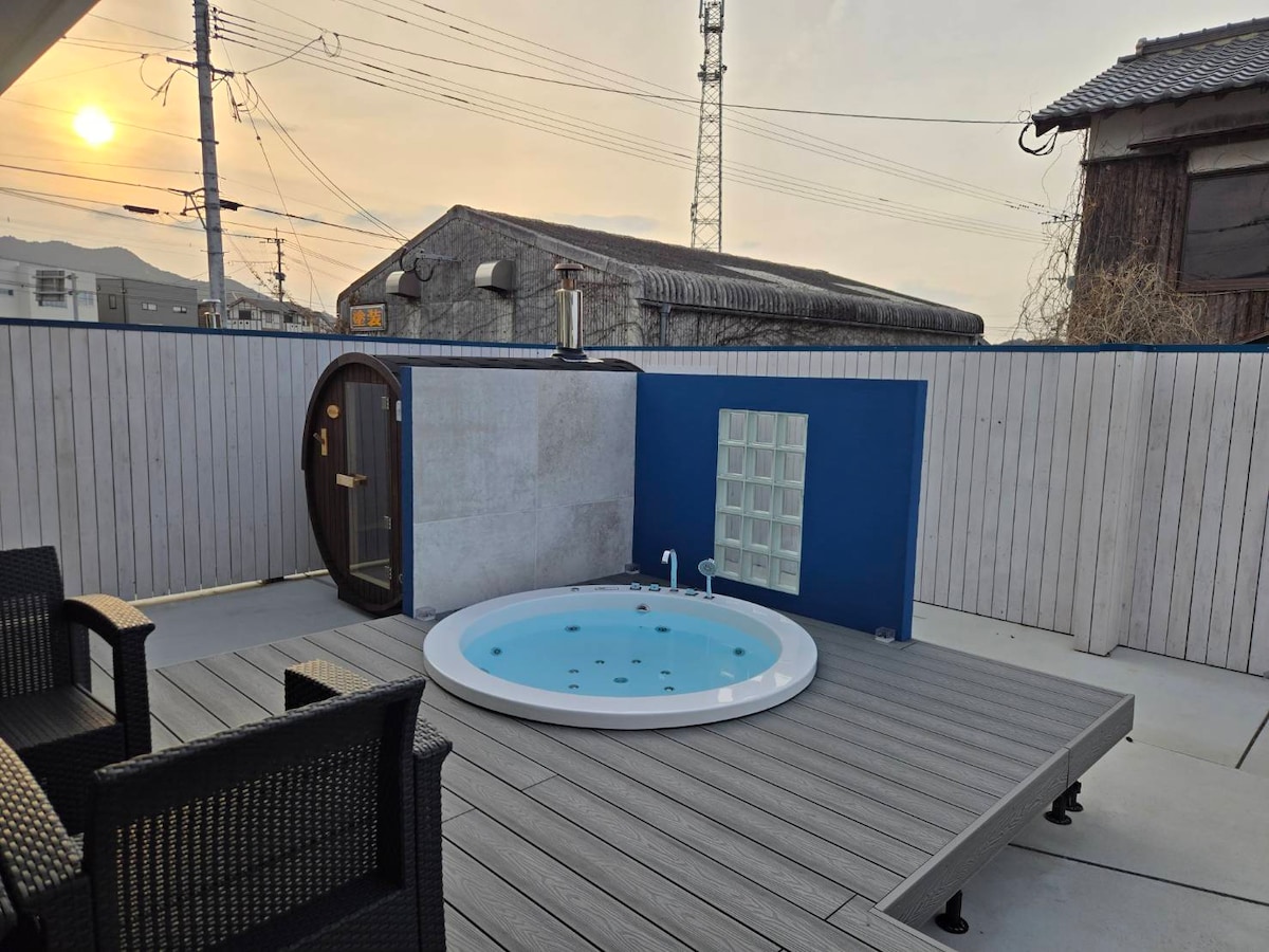 [Tenjin, Hakata] Biệt thự riêng có phòng xông hơi khô và bồn tắm ngoài trời/Tối đa 5 người/Chuyến đi chữa bệnh như sống ở nhà