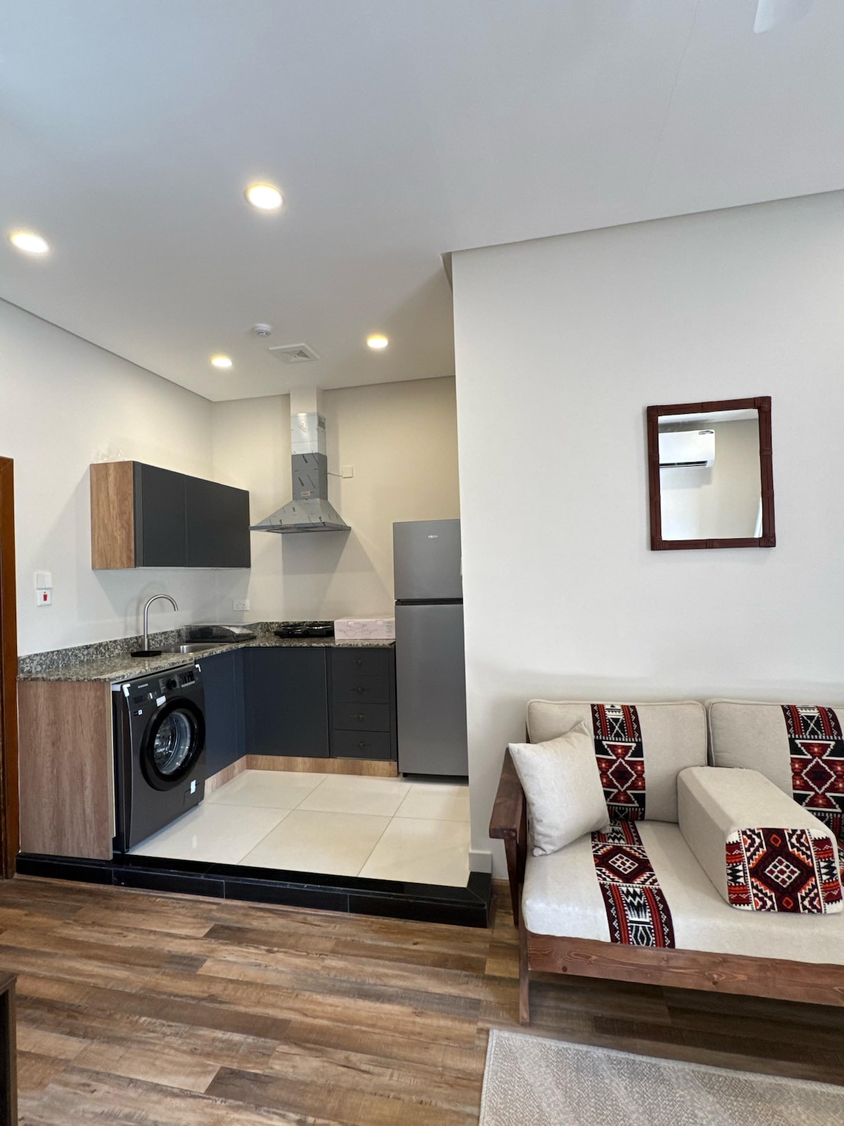 Chào mừng bạn đến với studio hiện đại của chúng tôi, nằm ở vị trí thuận tiện chỉ cách Adliya 338, Trung tâm thương mại trung tâm thành phố, Vịnh Bahrain và Khu ngoại giao 15 phút. Chỉ cách sân bay khoảng 25 phút, tận hưởng chỗ đỗ xe miễn phí và WiFi trong thời gian lưu trú của bạn. Vị trí đắc địa của chúng tôi giúp bạn dễ dàng đến các nhà hàng, quán cà phê, cửa hàng tạp hóa và bệnh viện - tất cả đều cách đó một quãng đi bộ. Trải nghiệm sự pha trộn hoàn hảo giữa sự thoải mái, tiện lợi và kết nối tại dịch vụ đón tiếp khách Airbnb hiện đại của chúng tôi. Chuyến phiêu lưu ở Bahrain đang chờ đón bạn!