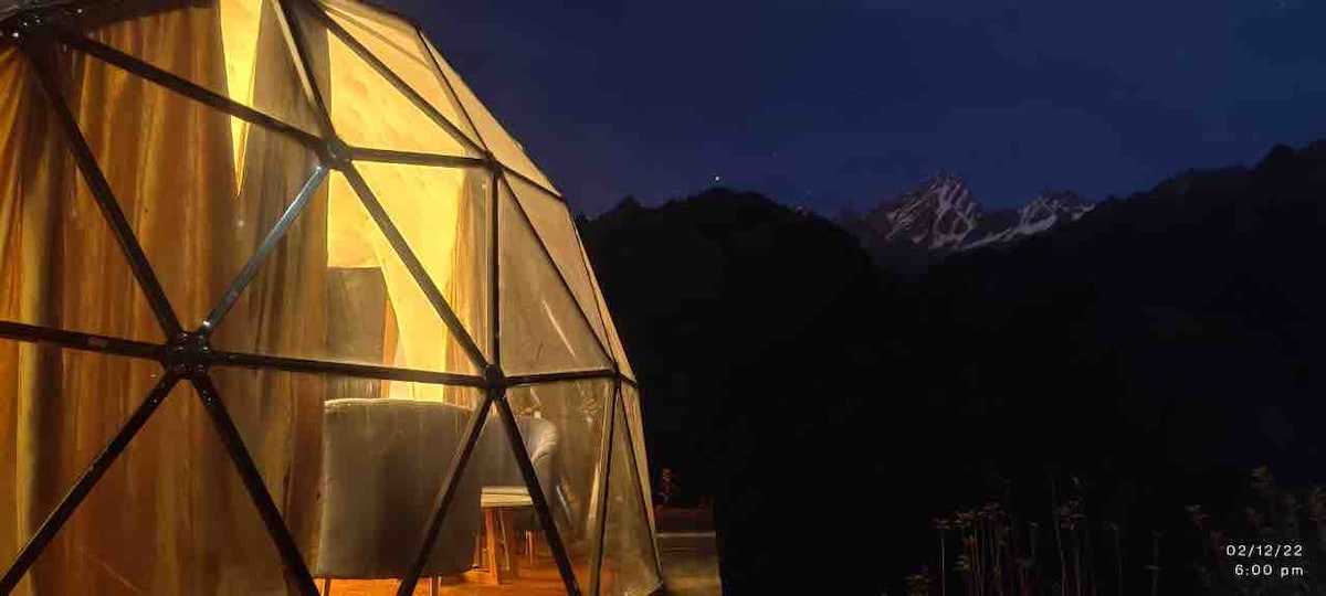 Inspired by Himalyan berries, Kaafal cottages are a bunch of domes in the shape, colour & texture of the berry, Kaafal. Imagined in India and built by European architects, this place was partially funded by Airbnb as winner of prestigious global OMG competition. Spacious Domes with 1 bedroom, sleeping area in attic, big living, and two pvt washrooms in each cottage. With a full time cook, you can order home style meals. 5-30 minutes drive from Makku temple, Chopta, Deoria Tal & Ukhimath.