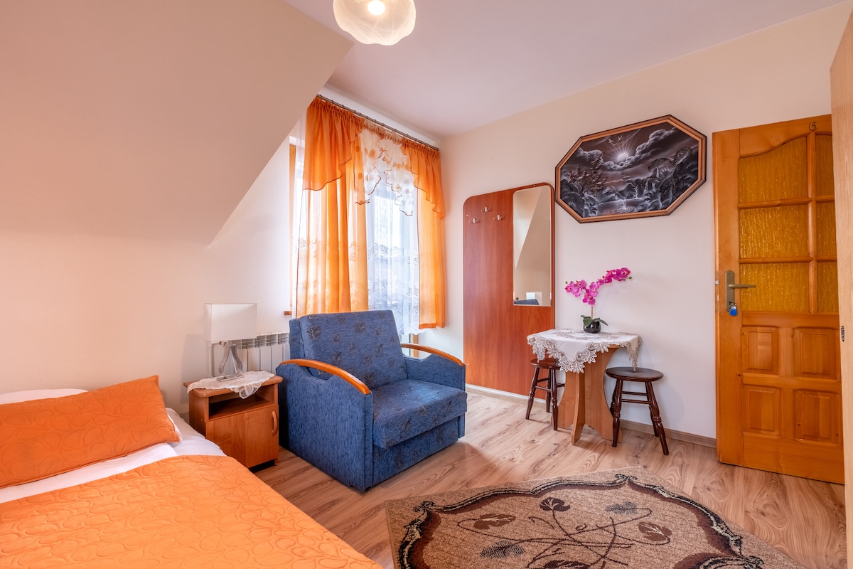 Cozy apartment (50 m²) in Zakopane. The interior, decorated in a rustic style, creates a warm atmosphere. An excellent starting point for mountain enthusiasts, located at the foot of Wielka Krokiew. Just a 15-minute walk from the famous Krupówki street, where numerous restaurants and shops await. The nearest bus stop is 300 m away, allowing easy exploration of the area.