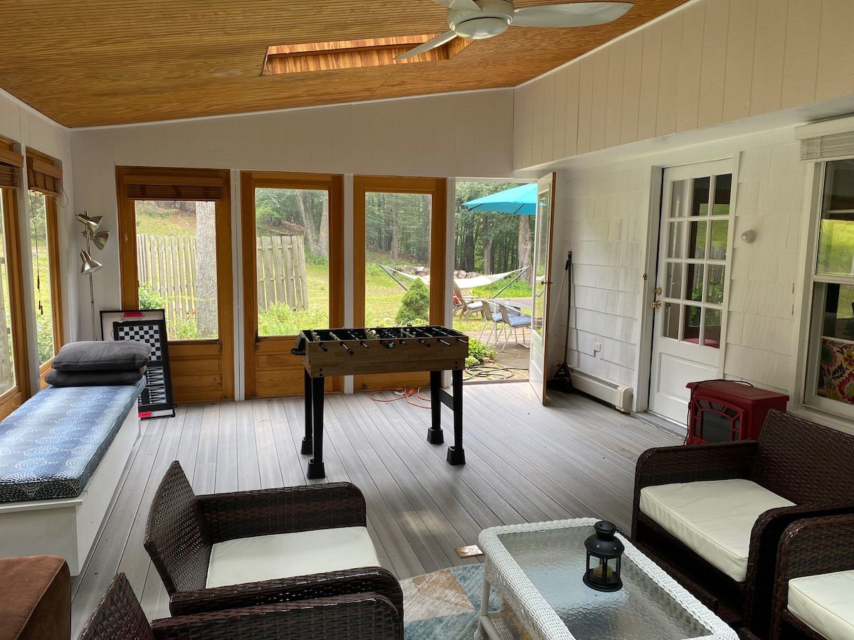 Step into a peaceful, well-appointed home nestled on 14 acres of ancient trees, stone walls, and meadows in Pound Ridge, NY. This light-filled guesthouse is designed for relaxation, with a heated saltwater pool available in summer, sunbathing under a majestic maple tree, and evening stargazing by the outdoor fire pit. Perfect for families, small groups, or couples seeking a peaceful nature retreat.