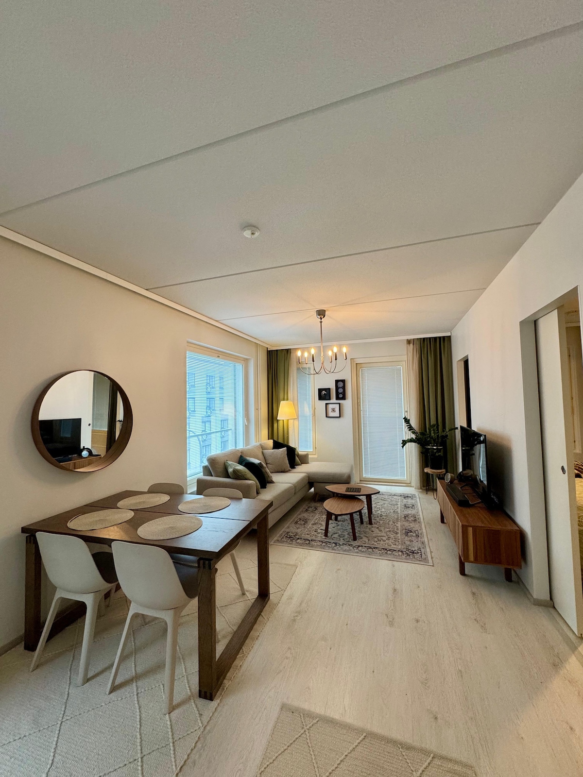 Nhiệt liệt chào mừng bạn đến ở trong một căn hộ chung cư cao cấp rộng rãi và sang trọng (59m²) ở trung tâm Tampere ❣️ Mọi thứ bạn cần đều có thể tìm thấy trong khoảng cách đi bộ. Nhà ga chỉ cách 450 m và Nokia Arena cũng ngay bên cạnh. Căn hộ tầng 2 có một phòng ngủ với giường Yankee cho hai người. Giường phụ bao gồm giường sofa và lò sưởi + một vài nệm bổ sung. • Nhà bếp không gian mở được trang bị đầy đủ tiện nghi hiện đại với khu vực • Ban công tráng men • TV 55” • Wifi miễn phí • Tự nhận phòng Có chỗ đỗ xe miễn phí gần đó.