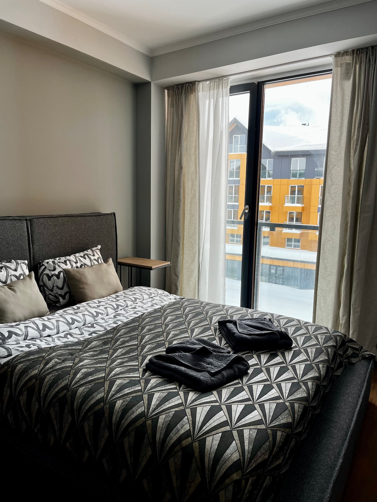 Dear guests, if you'd like to stay in a cozy luxury apartment with astonishing mountain views and a 1-minute walking distance to the ski loft, mini-market, and restaurants, this is the best place for you to stay. The apartment is fully equipped with everything you might need for your stay. Apartment features include a Wi-Fi, smart TV, queen-size bed, folding sofa, full kitchenette, bath with a hairdryer, and more. As a bonus, there is a ski rink right in front of the apartment. why wait? Book