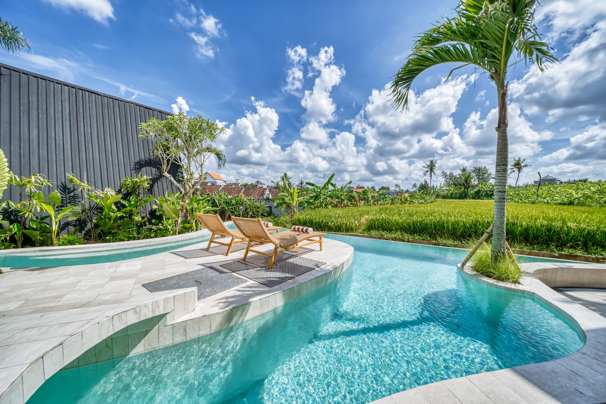 Wake up to the beautiful view of your private garden, full of sunshine. Enjoy the peace in your traditional, Balinese wooden villa with traditional decorations. Sip on your morning coffee or send out some emails from the open kitchen with rice field views, enjoy your PRIVATE INFINITY POOL or take in some sun on the loungers.
