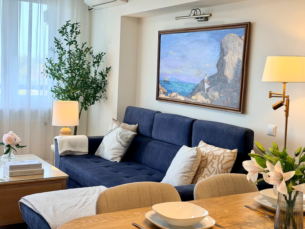 Một căn hộ một phòng ngủ hiện đại, sân thượng sáng sủa cách xa giao thông du lịch, nhưng vẫn gần trung tâm thành phố. Phương tiện giao thông công cộng cũng có sẵn vào ban đêm. Công viên, nhà hàng, quán cà phê, sân chơi spa, bãi biển cũng nằm trong tầm tay. Chỗ đỗ xe miễn phí cho những người đi cùng xe. Khu phố an toàn với phương tiện giao thông công cộng tuyệt vời. Chợ địa phương 3 phút, Công viên thành phố 8 phút, trung tâm thành phố 15 phút đi xe hơi. Căn hộ rộng 43 m2.
