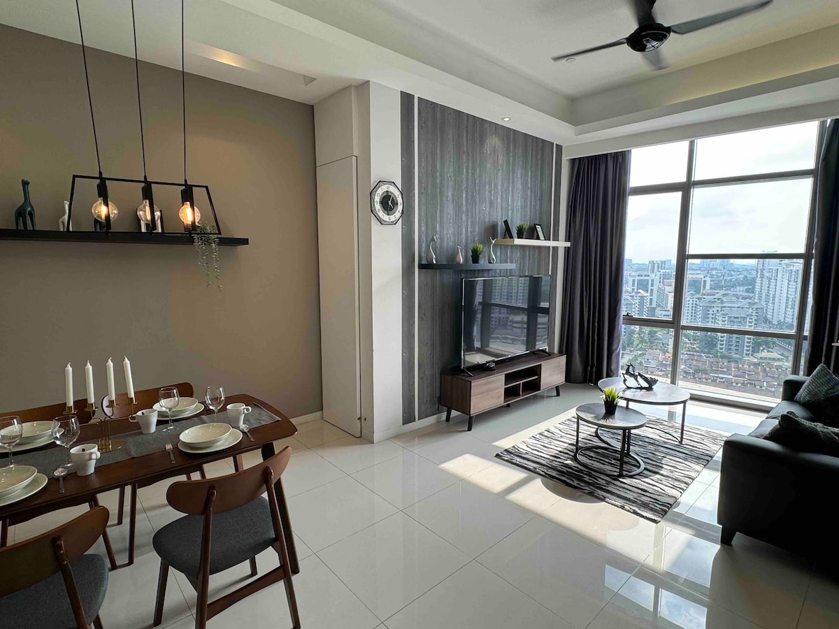 2 bedrooms, 2 bathrooms luxury service apartment. unlimited 800mbps (Unifi)high speed internet.43 inch smart tv in the ensuite bedroom.55 inch smart tv in the living room. Kitchen facilities with built in gas hob, refrigerator, microwave.Door steps to cinema , F&B outlets , Lotus at paradigm mall. Easy access ,Located in the same building with Le Meridien Hotel roof top bar, best view in town).24 hours 3 tier security with access card to enter building with private carpark