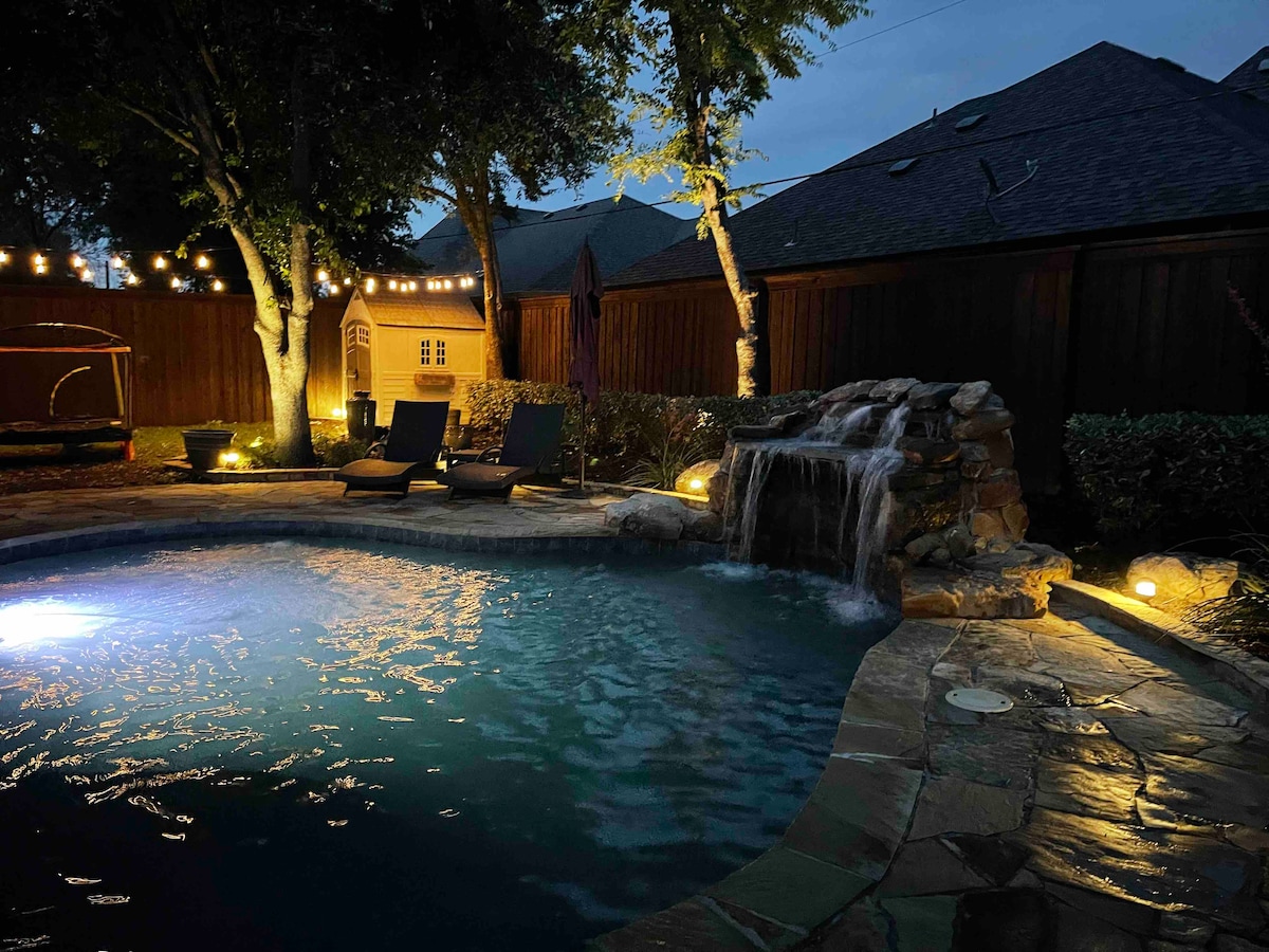 Chào mừng bạn đến với 3 phòng ngủ tinh tế của chúng tôi, 2,5 phòng tắm Roanoke retreat! Đắm chìm trong sự sang trọng với hồ bơi riêng và nội thất phong cách. Thư giãn trong khu vực sinh hoạt rộng rãi, thưởng thức các bữa ăn trong nhà bếp hiện đại và phơi mình trong ốc đảo bên hồ bơi ngập nắng. Chỉ vài phút từ sự quyến rũ và hấp dẫn của Roanoke, đây là Texas sống tốt nhất. Kỳ nghỉ cao cấp của bạn đang chờ bạn! Bạn chỉ... - 20 phút từ sân bay DFW - Cách Đường cao tốc Texas Motor 4 dặm - 30 phút đến Sân vận động AT&T và Dixie 's Arena