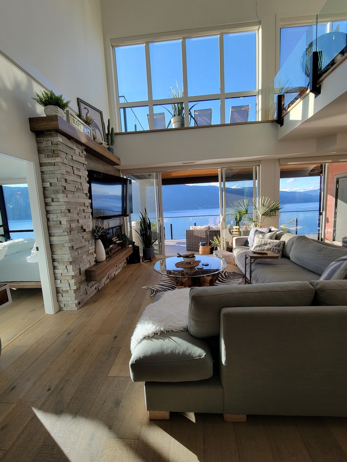 Một phòng ngủ sang trọng tự hào với tầm nhìn không bị cản trở ra Hồ Okanagan từ MỖI phòng. Chỉ cách các sân golf bình dị, nhà máy rượu vang đẳng cấp thế giới và một số con đường mòn đi bộ đường dài tuyệt vời nhất trong tỉnh. Bạn có thể đi bộ đường dài trên núi Boucherie vào buổi sáng và ngồi trên sân hiên tại nhà máy rượu Mission Hill lúc hoàng hôn, đi bộ dọc theo bờ hồ, hoặc ngồi trên boong riêng của bạn lắng nghe tiếng chuông báo động mang tính biểu tượng trong khi ngắm mặt trời lặn xuống màu xanh lấp lánh của hồ.