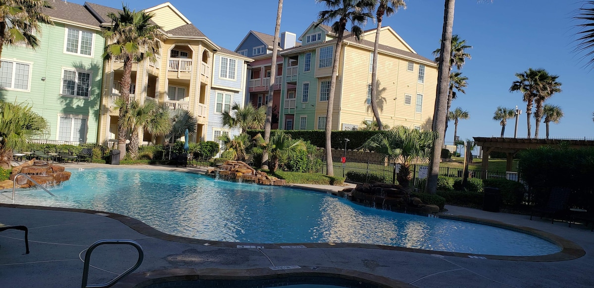 Tận hưởng phong cách trang trí ven biển tại căn hộ yên bình và nằm ở trung tâm Kemah này. Chúng tôi cách Kemah Boardwalk nổi tiếng 1 dặm và cách % {list_vài phút. Khoảng cách đi bộ đến các quán bar và nhà hàng địa phương. Căn hộ của chúng tôi nằm trên tầng hai và là một căn hộ hai tầng với tầm nhìn hướng ra Marina và hồ bơi. Không gian: Phòng ngủ chính: Giường cỡ King và khu vực ngồi để bạn tận hưởng. Phòng ngủ số2 giường Queen. Phòng khách có một giường đôi và một sofa ngủ đôi. Bao gồm chỗ đỗ xe cho khách.
