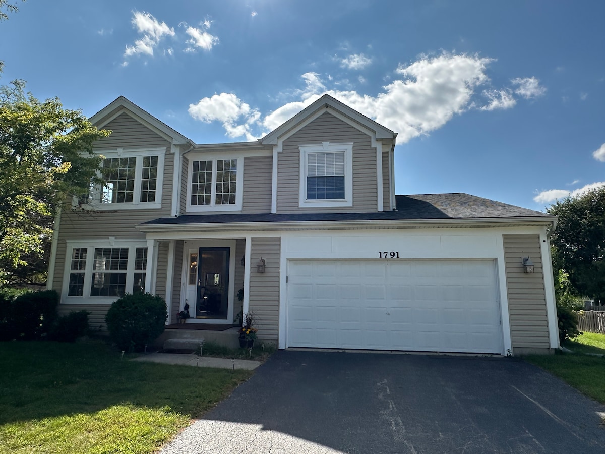 Vị trí, Vị trí, Vị trí. Bốn phòng ngủ. Nhà có kích thước tuyệt vời. Vị trí chiến lược gần I-88, trung tâm mua sắm Chicago Outlet, Bệnh viện Rush-Copley và các khu mua sắm mới, gần nhà ga RT 59. Tầng hầm đầy đủ kiểu Anh, Ánh sáng và sáng sủa với trần nhà 9ft và cửa sổ lớn. Boong tuyệt vời để bạn tận hưởng ngoài trời. Trường học Oswego 308 và công viên trong khuôn viên. Gia đình bạn sẽ ở gần mọi thứ khi bạn ở tại địa điểm nằm ở trung tâm này. Có 7 giường, tối đa 10 người bao gồm tầng hầm.