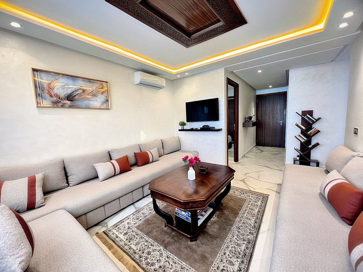Relax in this quiet and stylish place Nearby: Quick,Mini world,Mini chicken. Cozy and chic apartment that offers: First bedroom king bed( on built-in mattress) with closet and private bathroom Second bedroom two single mattresses with closet Second bathroom Large Tv with IPTV Fully equipped kitchen Washing machine The space: easy access to all the restaurants, coffee shops,snack bars and the train station Other things to note: In accordance with Moroccan law we do not host unmarried couples