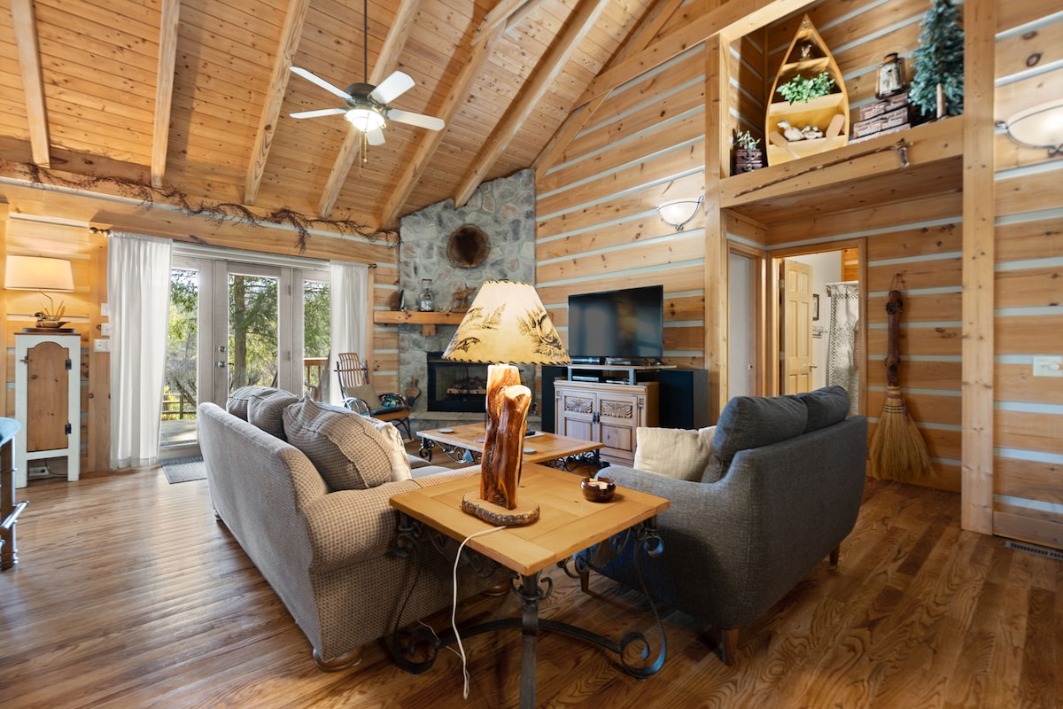 Đẹp cập nhật 3 tầng, 3-BD, 2-BA Cabin. Ẩn mình trong Cộng đồng Deerwater Lake Gated yên tĩnh. Ngủ-8. Vị trí đắc địa. Thân thiện với thú cưng. Tự hào với ao cá riêng, Wi-Fi cáp quang, boong mở lớn, bếp nướng gas và nhiều tiện nghi khác! Tuyệt vời để chèo thuyền kayak, bơi lội và câu cá! Gần công viên địa hình Hollerwood, Zip-Line, nhà hàng, Leo núi, Cầu tự nhiên và nhiều địa điểm khác. Một cabin tuyệt vời cho các nhóm nhỏ.