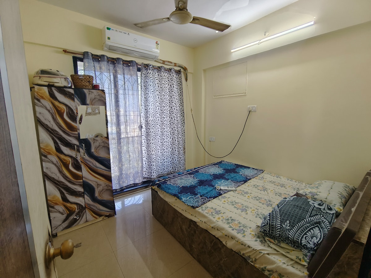 A well-maintained private room in Kharghar Sector 12, ideal for travelers, family and professionals. Located 5 minutes from Kharghar Railway Station and close to AC Patil College and NIFT, and just 8 minutes from ACTREC, in a calm residential area. The space offers 24/7 secure access, greenery outside, 3 single beds with cupboards, a clean bathroom with essentials, kitchen access, washing machine, RO water, and comfortable common areas- perfect for a peaceful, homely stay.