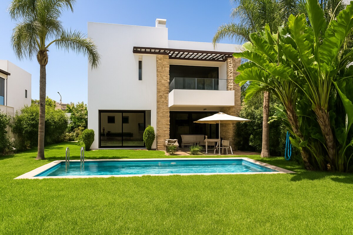 Chào mừng bạn đến với biệt thự Plage des Nations xinh đẹp ở Rabat! Biệt thự xa hoa này mang đến cho bạn trải nghiệm lưu trú đặc biệt với các đặc điểm độc đáo: - Vị trí mơ ước cách bãi biển chưa đến 100 mét - Không gian hai tầng phong cách - Tiện nghi hiện đại - Vườn và hồ bơi - Toàn cảnh sân golf - Bếp đầy đủ - Đỗ xe miễn phí - An ninh 24/7