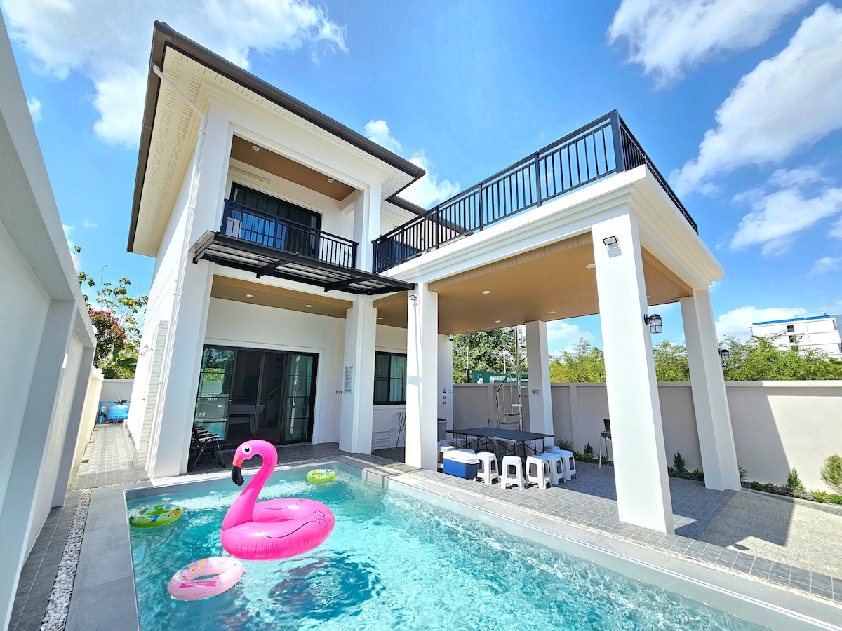Private City Villa | Pool, BBQ & Near shopping mall Enjoy the entire house all to yourself! Perfect for families and friends who want full privacy. Self Check-in: Easy and flexible arrival. Private Pool: Fun for kids and adults. Karaoke/Pool table & BBQ: Everything you need for a party! Top Location: 5 Minutes away from Central & Makro by car. Only 2 mins drive to the 7-11 . Easy transport and easy to find food!