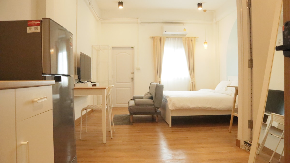 Chào mừng bạn đến với studio đương đại của chúng tôi ở Rangsit, Pathumthani. Cách Sân bay Don Mueang khoảng 10 km, hoàn hảo cho du khách. Với giường queen ấm cúng, phòng tắm và bếp nhỏ, nó đảm bảo một hành trình thoải mái để đón chuyến bay của bạn. Với lối đi thuận tiện đến cả sân bay và các điểm tham quan gần đó, đây là ngôi nhà lý tưởng của bạn gần Bangkok. Đặt ngay để có thời gian lưu trú thoải mái và phong cách!