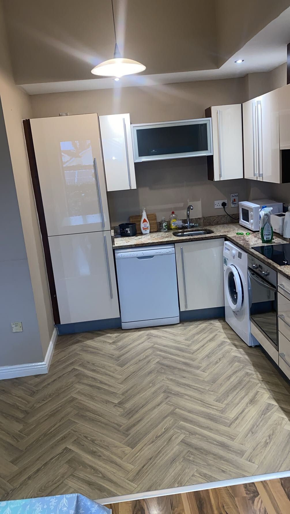 Spacious self contained apartment. Come fully equipped with kitchen/diner. Private Separate bathroom W/C Hairdrier Separate spacious bedroom. Own entrance. Kitchen fully fitted with Hob, microwave, toaster Kettle, washing machine, fridge freezer, and all relevant cooking utensils and crockery.