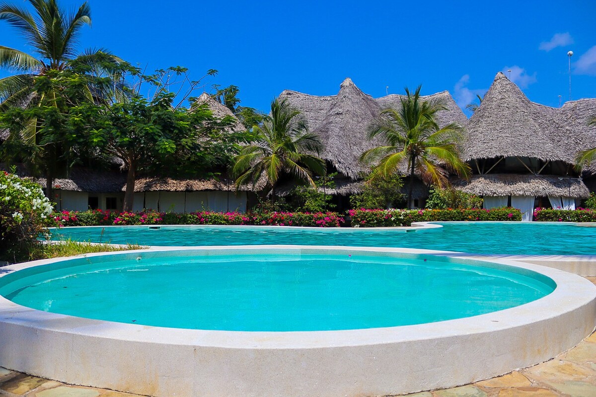 Biệt thự nằm bên trong một khu nghỉ dưỡng gần trung tâm và các bãi biển, khoảng 5 phút đi bộ. Mới được xây dựng gần đây, cung cấp đồ nội thất phong cách Swaili mới. Tất cả các phòng ngủ đều có phòng tắm riêng. Các phòng thoáng mát và sáng sủa và ở tầng 1, bạn sẽ có một căn hộ bán mở theo phong cách châu Phi, tường tre và phòng tắm cá nhân. Trong vườn có một hồ bơi 30 m lộng lẫy. Bao gồm dịch vụ vệ sinh hàng ngày, dịch vụ đầu bếp theo yêu cầu. Chúng tôi có cùng biệt thự cho các nhóm. bao gồm wi fi