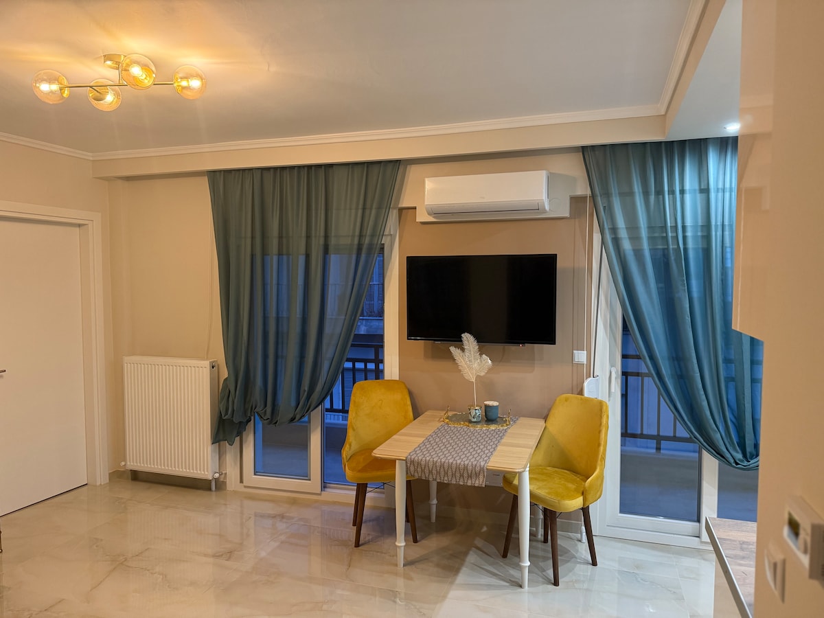 Dưới đây là căn hộ được cải tạo hoàn toàn rộng 70 m2 của tôi ở Sikies-Thessaloniki. Cho tối đa 5 người, cách trung tâm thành phố 3 klm và chỉ cách đường vành đai 2'. Bãi đỗ xe thực sự dễ dàng vì vậy đây là nơi hoàn hảo cho du khách có xe hơi. Ban công, thang máy, kết nối internet ổn định, TV thông minh phù hợp với thời gian lưu trú ngắn hạn và dài hạn ! Vui lòng hỏi thêm thông tin nhưng chúng tôi hy vọng rằng mọi thứ đều được đánh dấu trực tuyến. Chúng tôi rất hân hạnh được đón tiếp bạn!