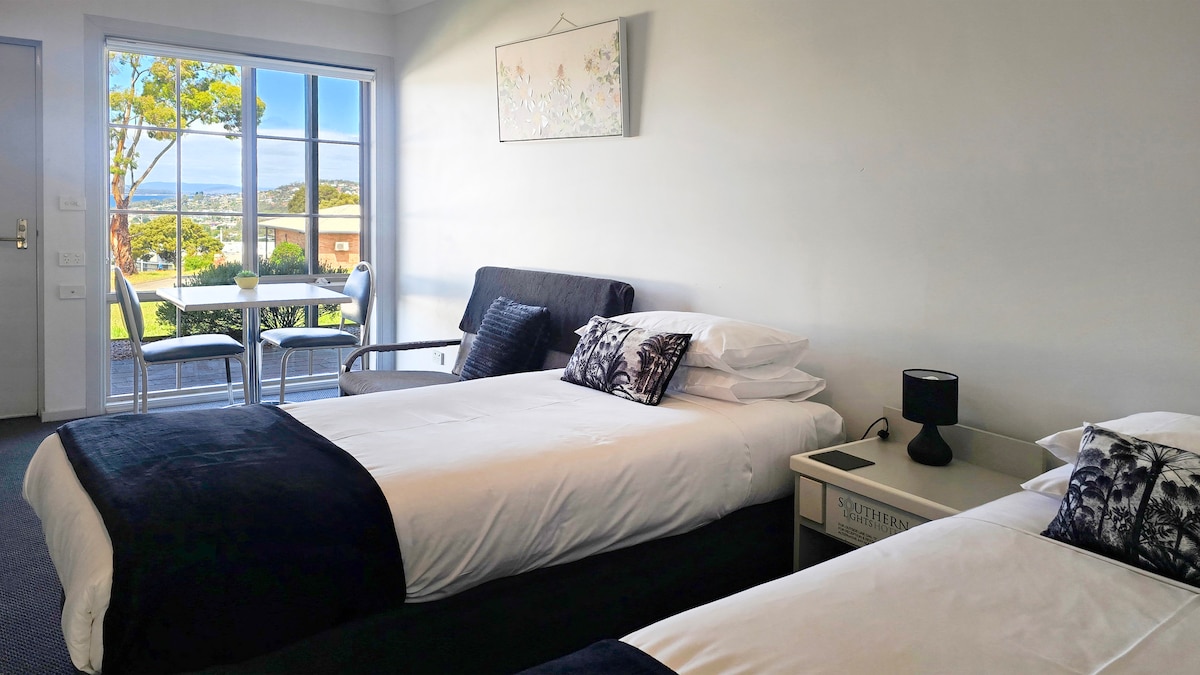 Vị trí yên bình với tầm nhìn đáng yêu ra bãi biển Kingston và sông Derwent. Cách thành phố 15 phút đi bộ và có thể đi bộ ngắn đến bãi biển và lái xe ngắn đến các nhà hàng và cửa hàng. Căn hộ này tách biệt với nhà, ấm cúng, an toàn và yên tĩnh, hoàn hảo cho thời gian lưu trú thư giãn trong khu vực. Cho dù đó là ngồi và thư giãn trên boong tàu với rượu vang và sách, căn hộ này là nơi hoàn hảo cho bạn. Wifi và TV thông minh không giới hạn nhanh. Hoạt động bếp đầy đủ tiện nghi, không bao gồm bữa sáng.