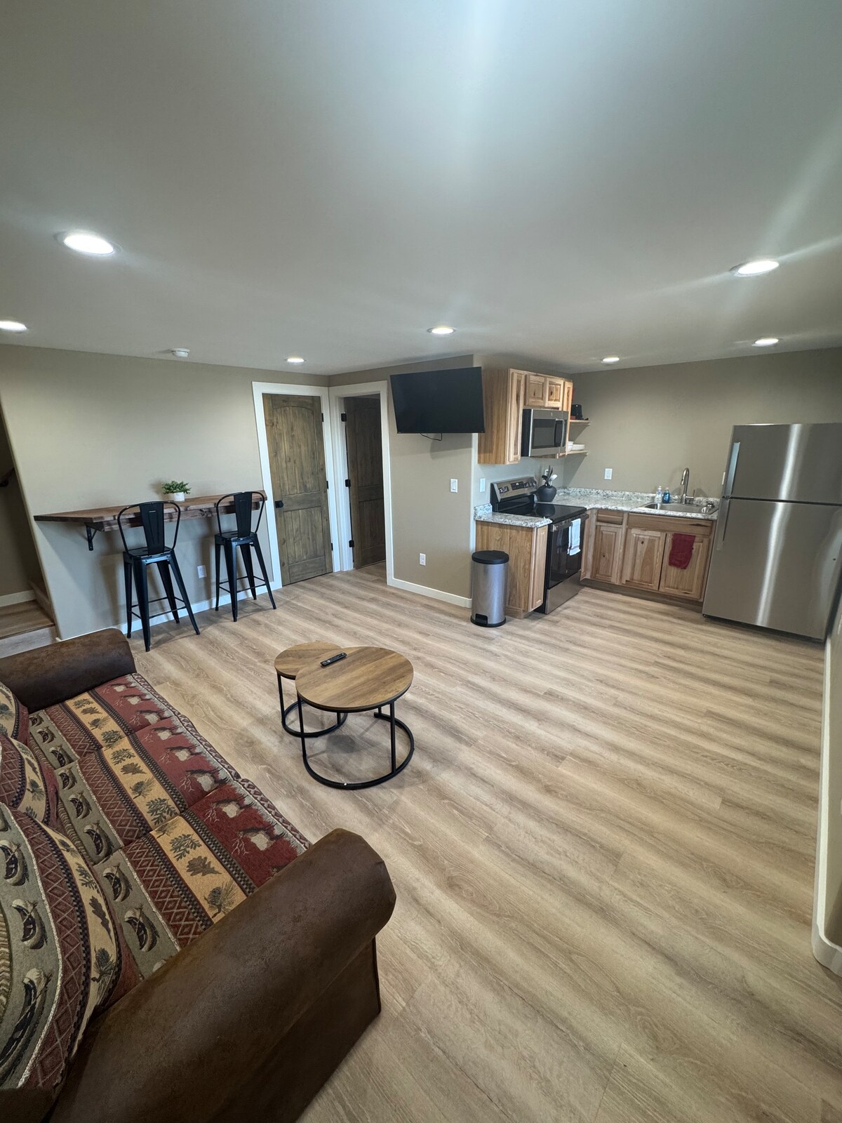 Welcome to our centrally located, updated Airbnb house in the heart of town! The house sleeps up to 7 people MAX. The house includes a fully equipped kitchen, laundry, garage access and a fully landscaped backyard. Outdoor amenities include comfortable seating, a picnic table, and a BBQ grill. Entertainment includes an Arcade table, Roku TVs in the living room and all bedrooms, books, puzzles/games, and an Amazon Luna. Book now! 🩶