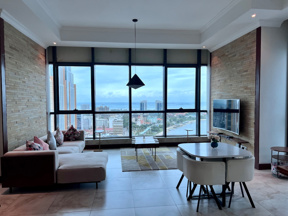 This modern 3-bedroom duplex is the perfect choice for travelers seeking a luxurious and unforgettable experience. Located in the heart of city center , this stunning property offers breathtaking views of the Indian Ocean and city skyline. With its open-plan living spaces, and exceptional decor, this duplex is the epitome of comfort. The spacious living room, with its plush sofas, floor-to-ceiling windows, and stunning ocean views, is the perfect place to unwind after a day of exploring.