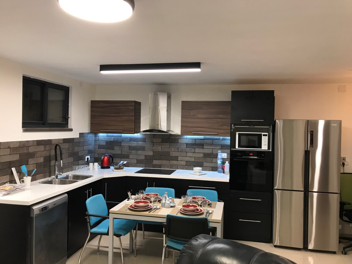 Located in a small, quiet suburban neighborhood of Jerusalem, on a hill overlooking the coast of Israel. The unit is a two-room apartment just below our beautiful house, located on the ground floor. There are two big bedrooms, a fully functional kitchen, cozy living room and dining area, library, study hall, patio, and one giant Shower!!! and of course, Israeli hospitality.