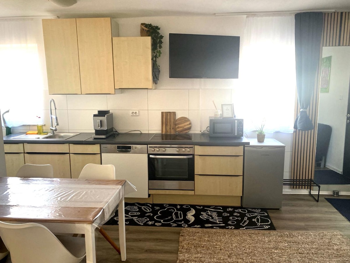 Nghỉ ngơi một chút trong phòng nghỉ được trang bị đầy đủ tiện nghi của chúng tôi. Căn phòng nằm ở tầng hầm của ngôi nhà tách biệt của chúng tôi và với 25 m2 có mọi thứ bạn cần cho một kỳ nghỉ ngắn. Phòng có lối vào riêng (không thể vào được) và bị khóa bởi khu vực sinh hoạt của chúng tôi. Nó được trang bị giường đôi (160x200), bàn làm việc, nhà bếp và khu vực chỗ ngồi. Trong phòng tắm riêng có khăn tắm và máy sấy tóc.