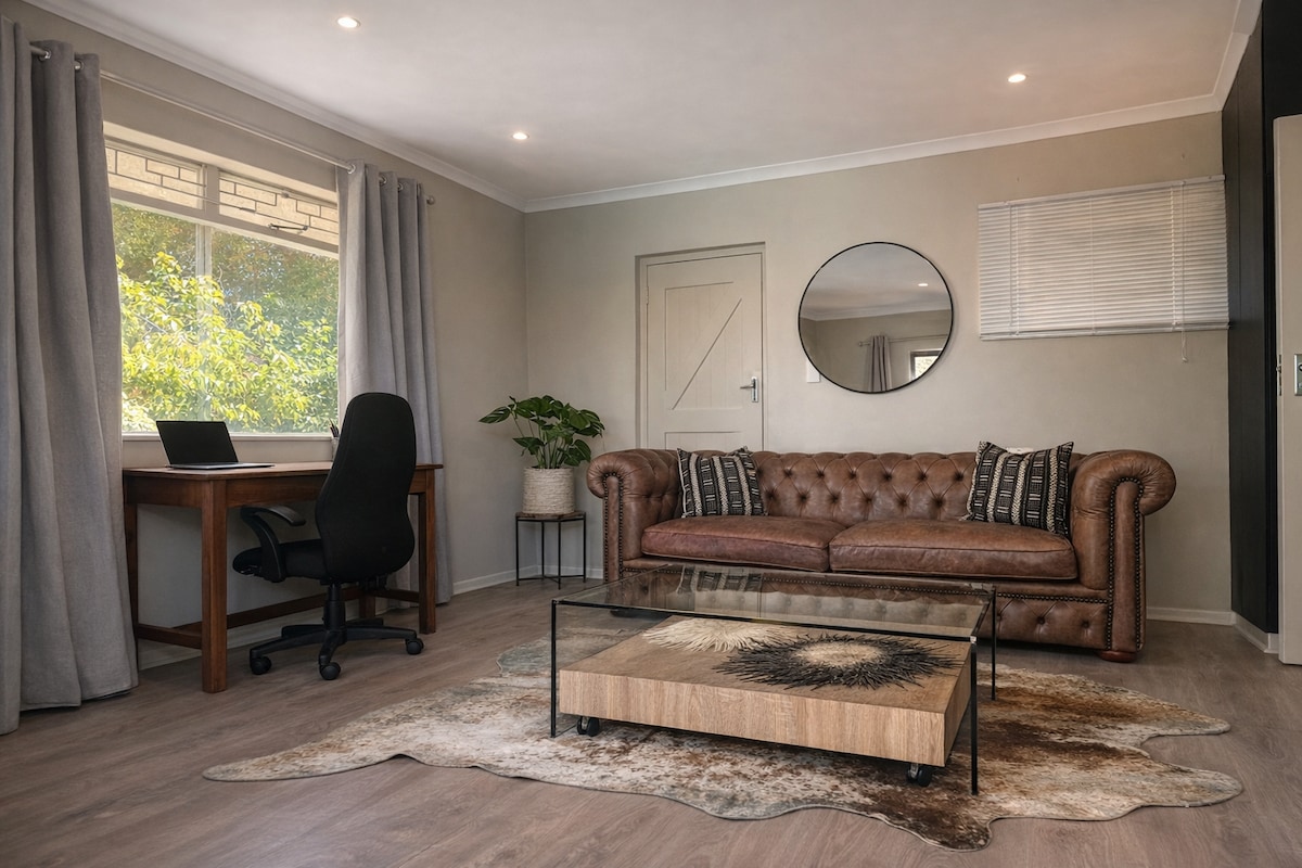 Thư giãn trong căn gác năng lượng mặt trời đầy phong cách, hiện đại này ở Mostertsdrift, khu phố chính của Stellenbosch. Bếp không gian mở, khu vực sinh hoạt ấm cúng và ban công riêng với tầm nhìn ra núi tuyệt đẹp để thưởng thức cà phê buổi sáng hoặc một ly rượu vang, hoàn hảo cho tối đa ba khách. Chỉ cách Lanzerac Wine Estate một quãng đi bộ ngắn và gần các quán cà phê, cửa hàng và điểm ăn uống. Tận hưởng những chuyến đi bộ đường dài ngắm cảnh hoặc đạp xe leo núi trong Khu bảo tồn thiên nhiên Jonkershoek, nếm thử rượu vang hoặc đơn giản là thư giãn - mọi thứ đều ở ngay trước cửa!