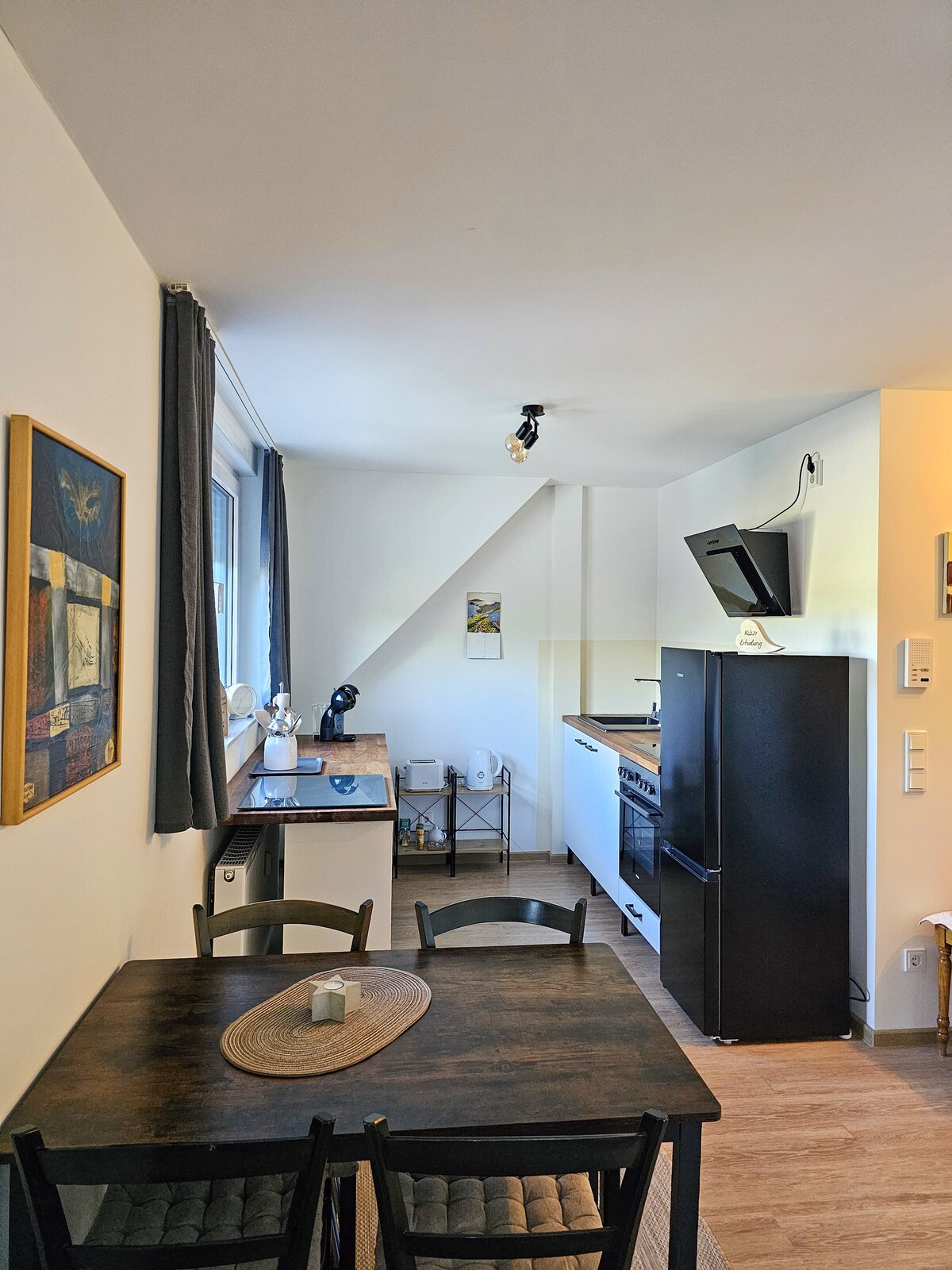 Căn hộ sáng sủa, lớn, đẹp trên nhà máy rượu, 'hyggelig' và đồ nội thất hiện đại. Rất nhiều gỗ tạo ra một bầu không khí ấm áp - cảm giác tốt. Với 110 mét vuông trên hai tầng, được kết nối bằng một cầu thang gỗ đẹp, một bếp mở và hai phòng tắm, một nơi tuyệt vời để đến để thư giãn. Bữa sáng trên ban công, tùy chọn đi bộ vườn nho với Christoph, một bậc thầy rượu vang, nướng trong vườn vào buổi tối,sau đó là một người mặt trời lặn từ nhà máy rượu - bạn có viết "thiên đường" vào buổi tối không?
